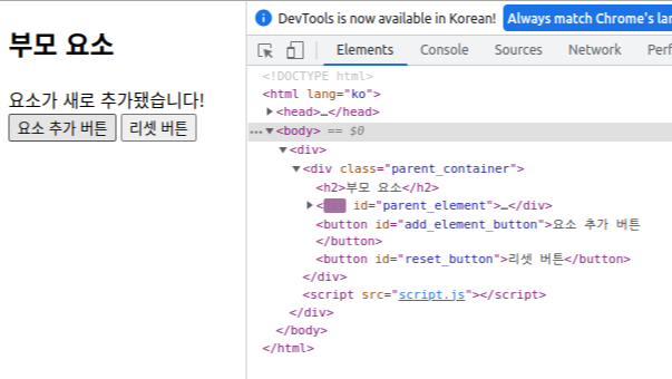자바스크립트로 HTML 요소에 자식 요소를 추가할 수 있다.